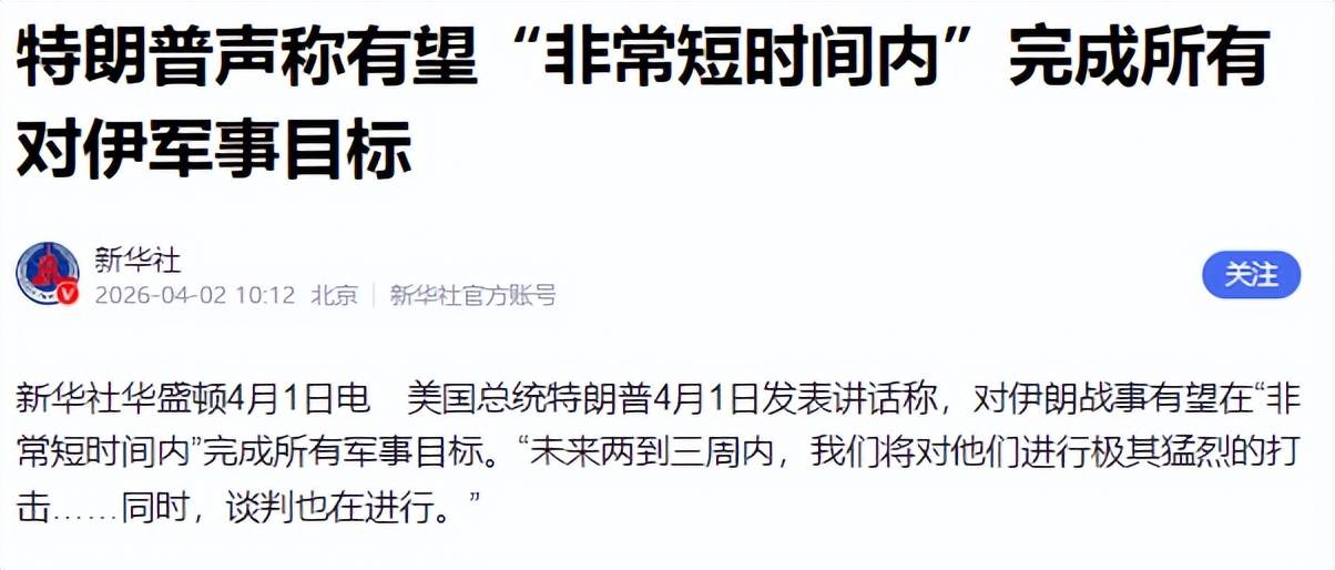 值得注意的是,就在战机被击落的前一天,特朗普于4月2日早间的全国电视讲话中,公开吹嘘美军已经彻底摧毁了伊朗的导弹和防御系统。他甚至宣称,未来两到三周内,美军将对伊朗发起极为猛烈的打击,计划在短时间内完成所有军事目标并结束这场战争。