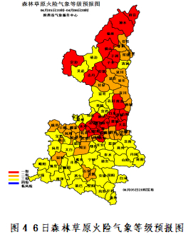 今天晚上:陕北晴天间多云,关中、陕南阴天间多云。宝鸡西南部、汉中南部、安康南部部分地方有小雨或阵雨(0~5毫米)(图3)。今日全省大部森林草原火险气象等级为1~3级(极高危险~较高危险)(图4),需注意防范。