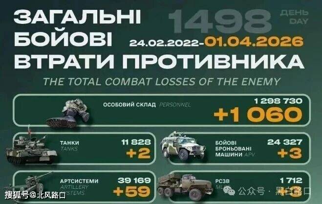 今天是俄乌战争第1498天(2026年4月1日),过去24小时大事件概述如下:
