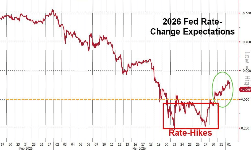 简言之,市场的逻辑是:战争结束→经济下行风险上升→美联储被迫降息→黄金受益。当前,市场对美联储2026年利率变动的预期转向鸽派立场,重新回到“降息”区域……