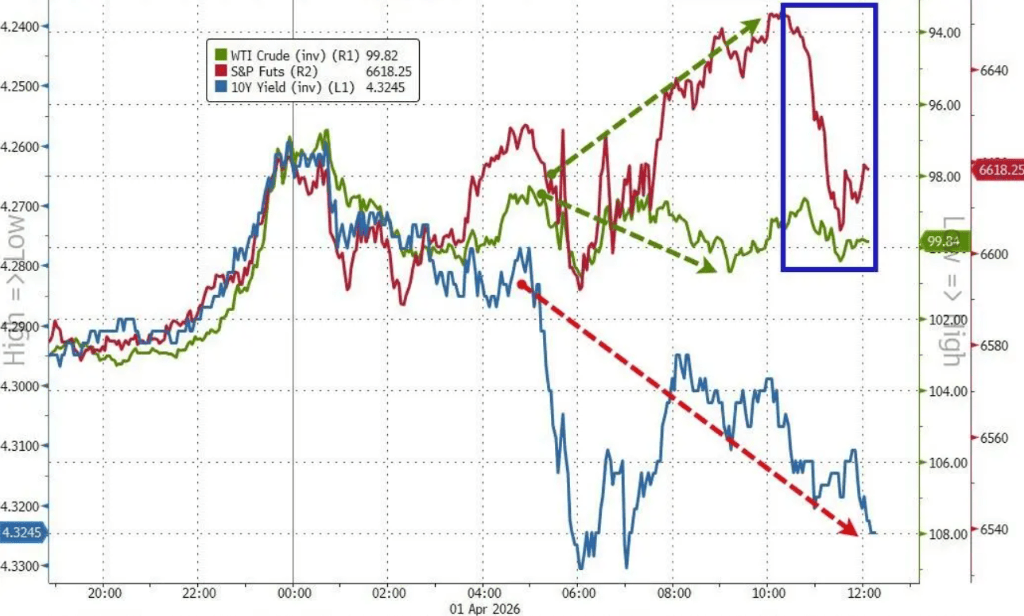 但油价的每一次下跌,都伴随着反弹。据数据梳理,4月1日全天,油价随着特朗普与伊朗之间的消息来回剧烈震荡: