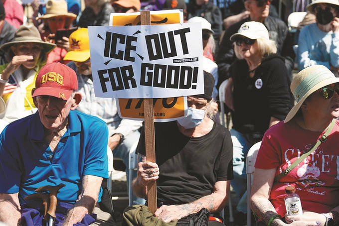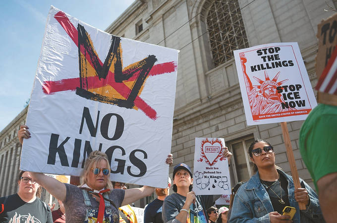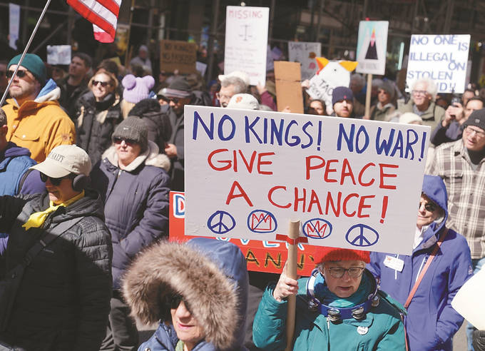 3月28日,人们在美国多地参加“不要国王”抗议活动。 (新华社发)