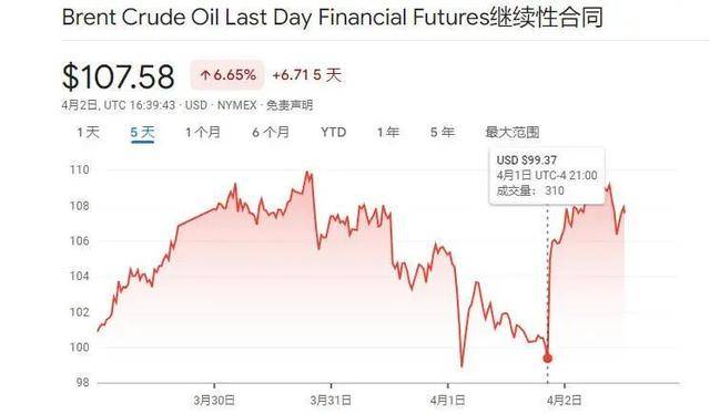 以6月交割的布伦特原油期货价格为例,在美东时间1日21时特朗普开始发表电视讲话后的一个小时内,该价格从99.37美元/桶飙升至105.97美元/桶,一个小时内的涨幅就达到6.64%。5月交割的美国西得克萨斯轻质原油(WTI)期货价格也在该时间段内从97.9美元/桶升至104.12美元/桶,涨幅达6.35%。截至2日收盘时,5月交割的美国西得克萨斯轻质原油(WTI)期货价格已升至111.54美元/桶,单日涨幅达11.42%。